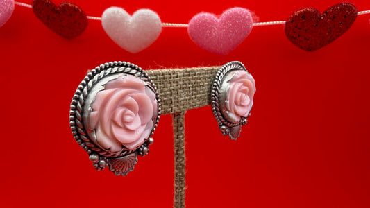 Carved Rose Sterling Silver Statement Studs by Black Wolf White Wolf Designs