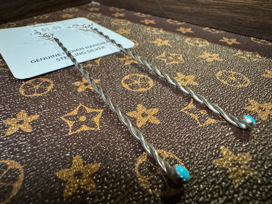Turquoise Navajo Pearl Straight Dangle Earrings