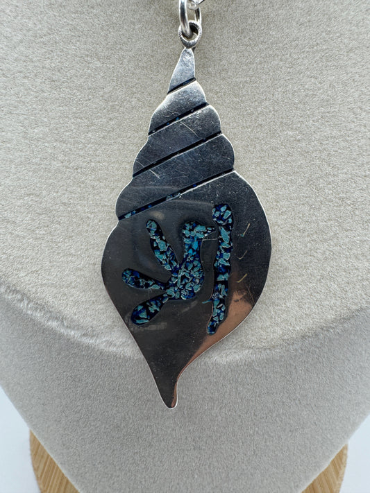 Taxco Pendant - Conch Shell with Bird Inlay