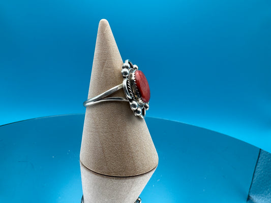 Red Spiny Oyster Statement Ring by Sheila Tso Size 8.5 | Sterling Silver