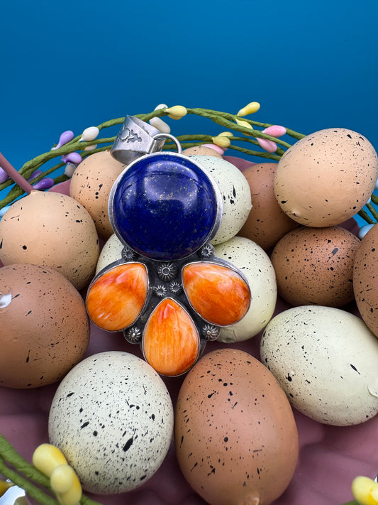 Lapis & Spiny Oyster Pendant by Ned Nez – Sterling Silver