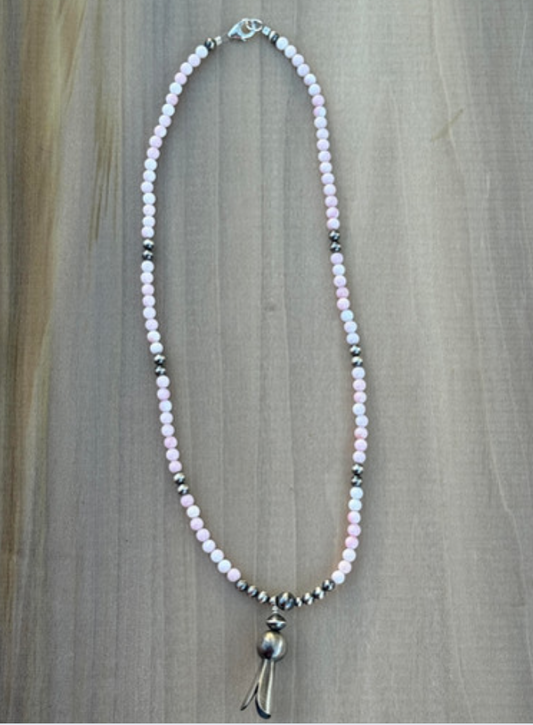 18” Navajo Pearl & Pink Conch Blossom Necklace