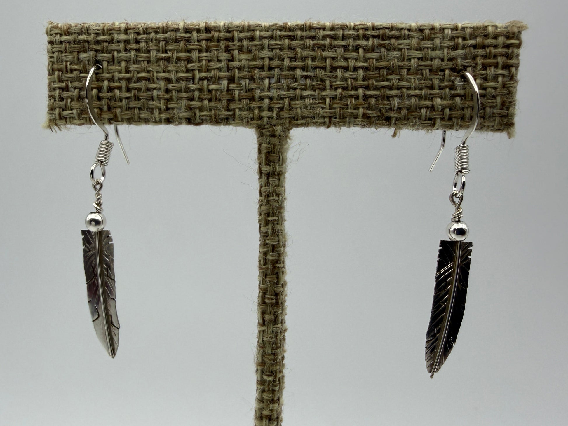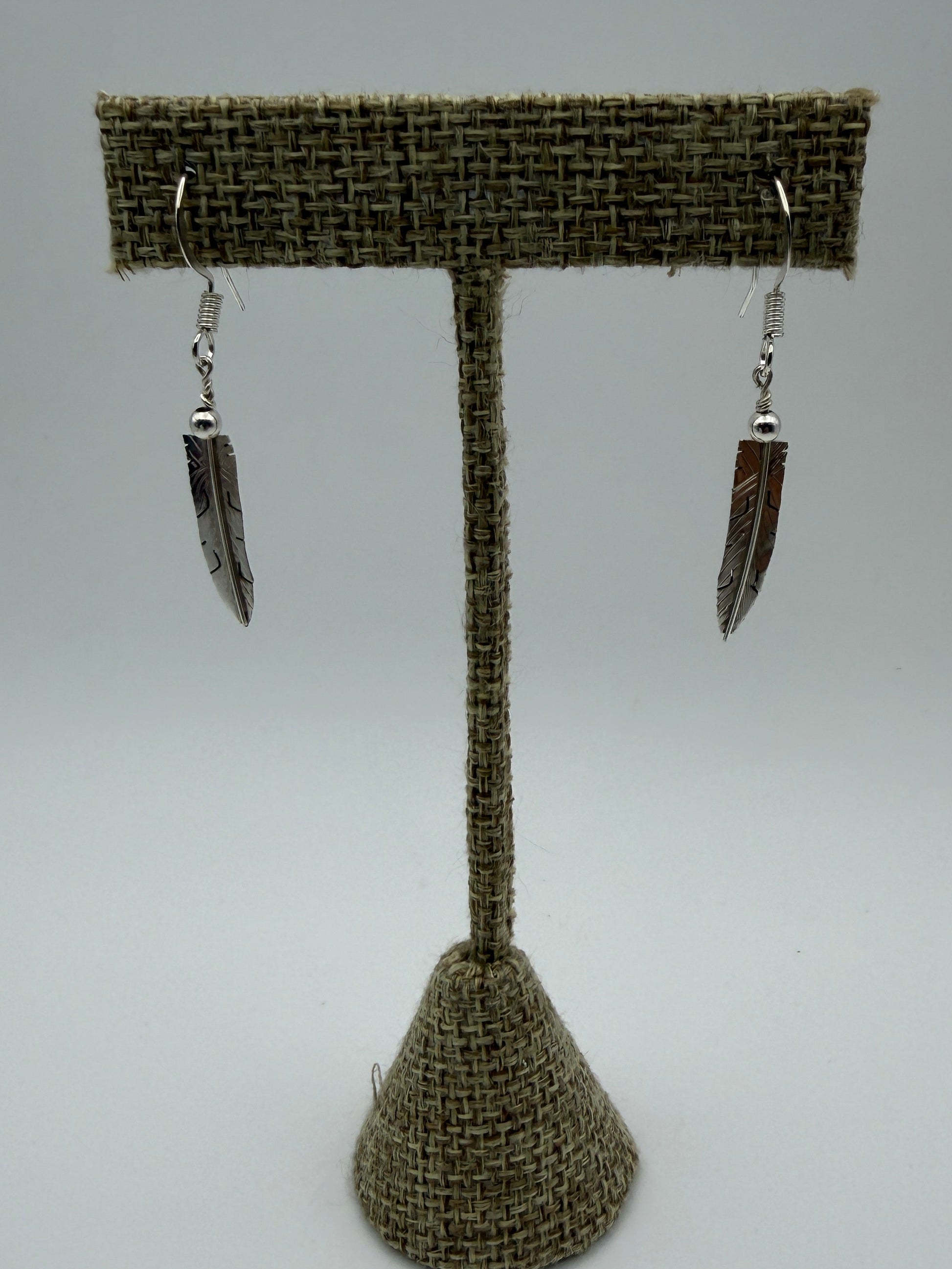 The feathers are solid sterling silver, paired with comfortable silver-plated ear wires, a standard Gallup style that keeps them light and affordable while still giving you the beauty of real sterling work.
