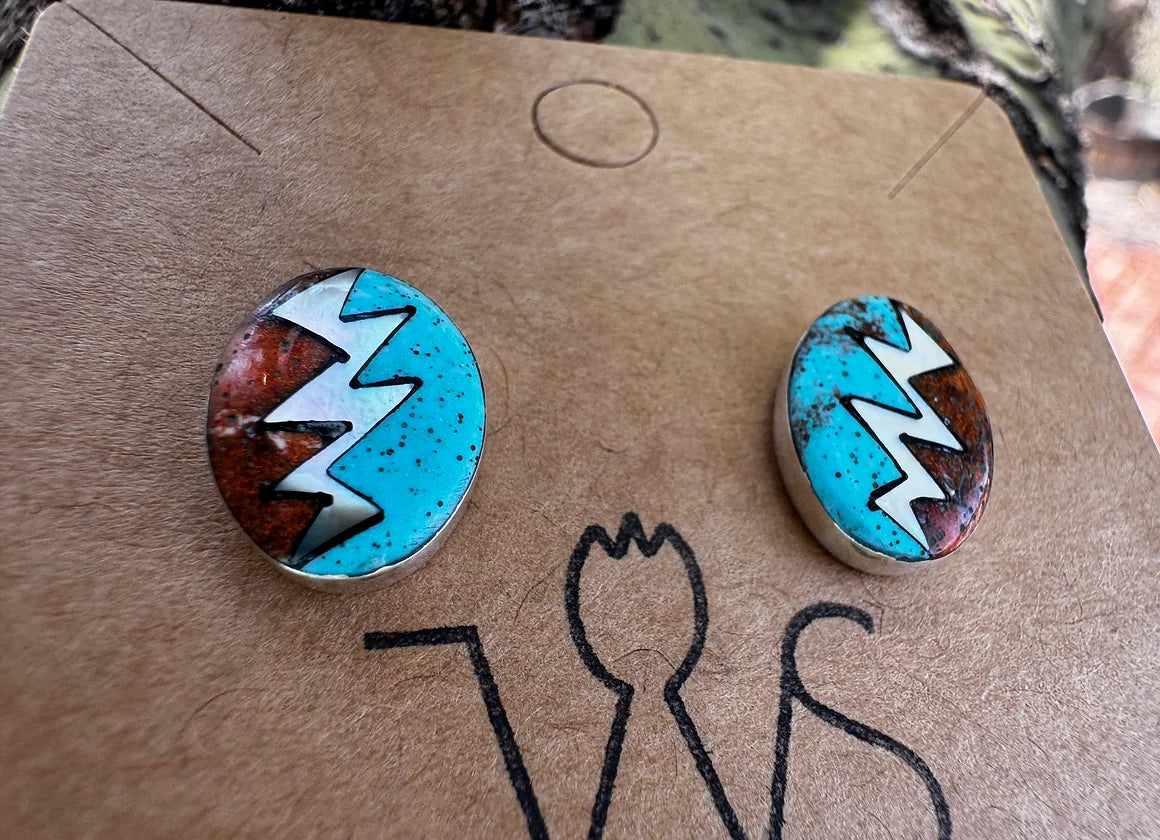 1.5" Sahara inlay postback earrings. They're handmade, one of a kind!